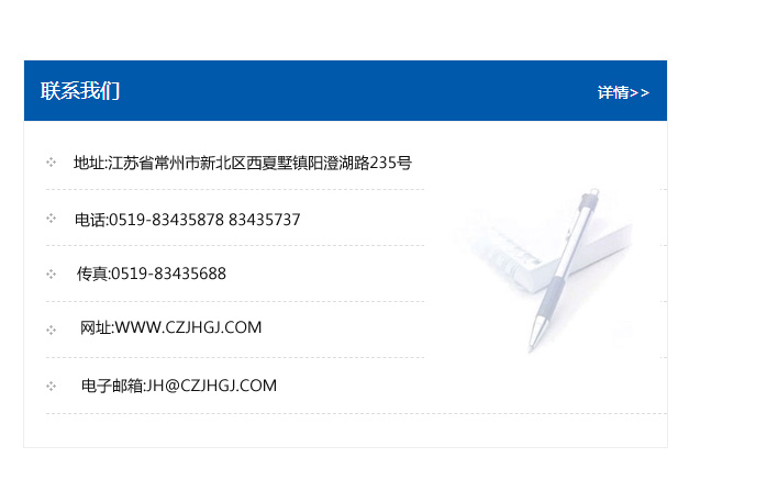 地址:常州市新北區(qū)友邦商務大廈1幢16、17層  電話:0519-85101652  傳真:0519-85112595  郵編:213022  網址:www.cz-jiayue_cn.ryx168.com  郵箱:xiajifengaa@163.com